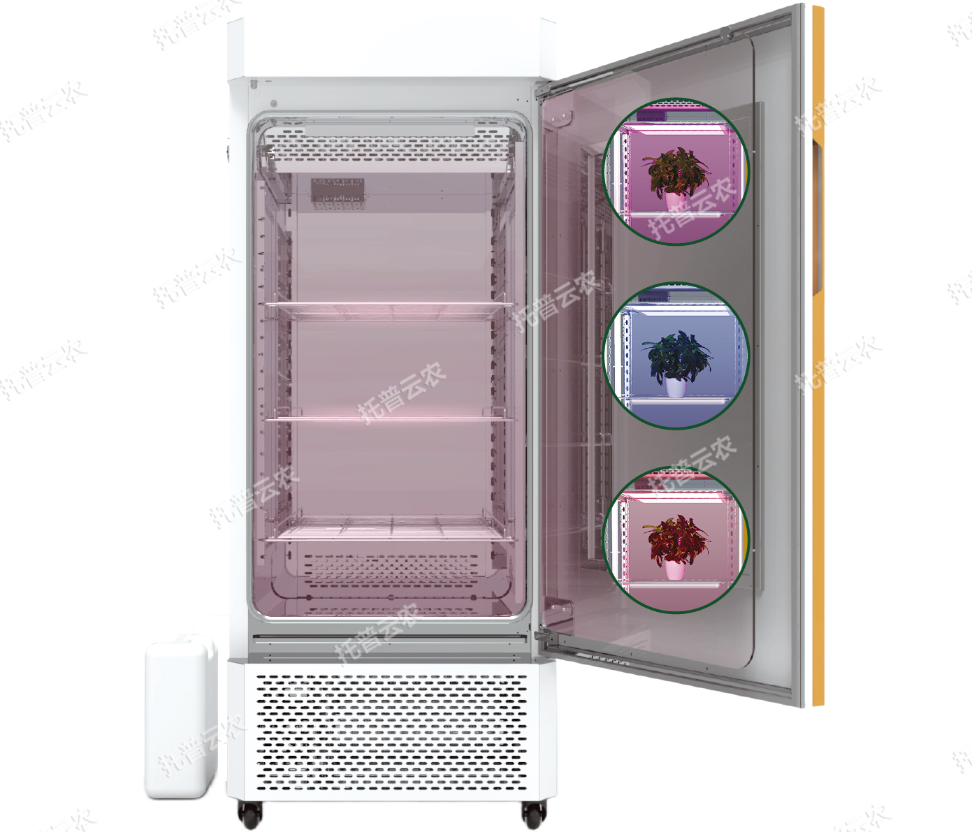 2、可調(diào)光譜照明系統(tǒng):內(nèi)置四色LED光源,波段包含白光400-700nm、紅光波長(zhǎng)660nm、藍(lán)光波長(zhǎng)450nm、紅外光波長(zhǎng)730nm,可獨(dú)立調(diào)節(jié)每種顏色LED光源的光強(qiáng),獲得不同的光譜組合(1004種),滿足植物不同階段對(duì)光的需求。