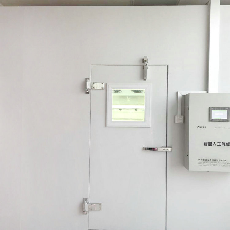 智能人工氣候室有中央控制系統(tǒng)、圍護結(jié)構(gòu)、溫濕度系統(tǒng)、智能新風(fēng)換氣系統(tǒng)、光照系統(tǒng)、制冷系統(tǒng)構(gòu)成。